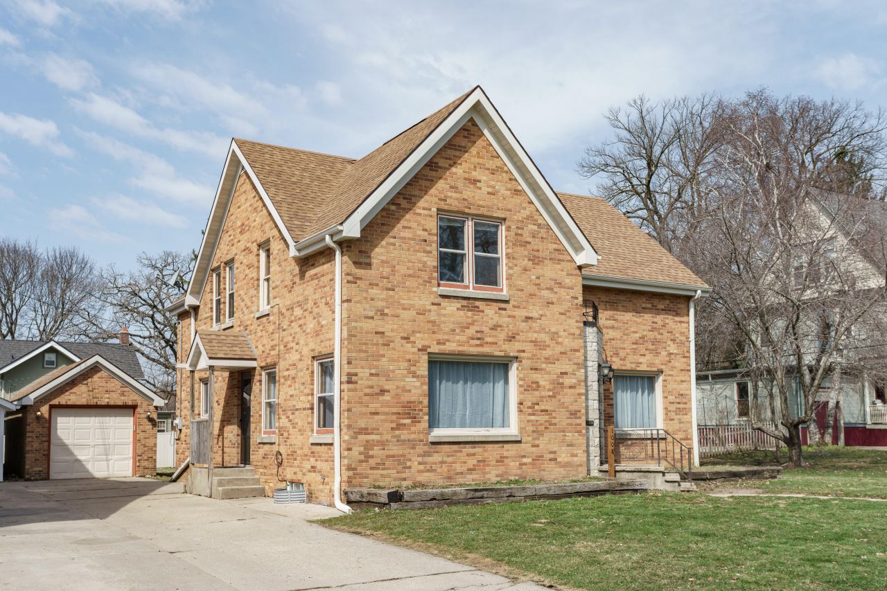 Charming brick home full of character and timeless appeal! This unique property features classic architectural details, including a stone-accented entry & hardwood floors throughout. The main level offers a spacious living room filled with natural light, huge formal dining room, dine-in kitchen with ample cabinetry, half bath, and a den or potential 4th bedroom with sliding doors to patio. Upstairs includes 3 bedrooms & a full bath, highlighted by a large primary bedroom with multiple closets & access to a second-level deck. The lower level offers a rec room, excellent storage, Badger Basement waterproof warranty & an additional half bath. Relax on the back patio, covered porch & partially fenced yard- your own private space to enjoy. Homes with this much charm don't last long. Call today!