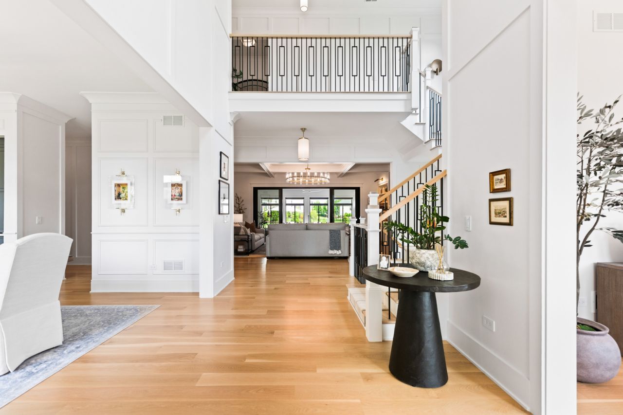 Located in the prestigious Prairie Lakes community of St. Charles, this better-than-new luxury home showcases a resort-style backyard with a modern pool, putting green, and presents like brand-new construction, offering a refined blend of design, comfort, and lifestyle. Built by the renowned Lighthouse Builders, this exceptional custom residence reflects timeless architecture, superior craftsmanship, and a thoughtfully designed open-concept layout tailored for both elevated entertaining and effortless everyday living. Step into expansive, light-filled interiors where white oak hardwood flooring, curated designer lighting, and architectural detailing create a cohesive sense of understated luxury. The formal living and dining spaces are enhanced by custom trim design and intentional architectural elements that elevate each room while maintaining warmth and livability. At the heart of the home, the kitchen reflects exceptional design and craftsmanship, featuring a grand center island, custom cabinetry, and premium appliances, including a Wolf six-burner range and paneled Sub-Zero refrigerator. An architectural statement ceiling adds dimension, while a built-in dry bar with a wine refrigerator and a sunlit dining area overlook the professionally designed backyard. A fully customized walk-in pantry offers extensive built-ins and highly functional storage. The family room is anchored by a striking coffered ceiling, integrated built-ins, and a 7.1 surround sound system designed for both comfort and connection. It transitions seamlessly into a four-season room with built-in speakers and panoramic views, creating a true extension of the living space and a seamless indoor-outdoor experience throughout the year. The main level also features a private office with French doors and abundant natural light, a thoughtfully designed laundry room with black-and-white checkerboard flooring, built-in workspace, and ample storage, as well as a functional mudroom with custom cubbies and direct access to a full bath-ideal for poolside use. A refined powder room completes the main level. The primary suite offers a serene retreat, highlighted by beamed ceilings, a paneled accent wall, and tranquil views of the backyard. The spa-inspired bath features a freestanding soaking tub positioned beneath expansive windows, dual vanities with custom cabinetry, and a glass walk-in shower wrapped in bold herringbone tile-all framed by vaulted ceilings that enhance the sense of volume and light. Each additional bedroom is designed with intention, offering walk-in closets and ensuite or direct bath access. Every bath showcases elevated finishes and cohesive design elements consistent with the home's overall level of quality. The outdoor environment is designed as a private resort experience, featuring a modern in-ground pool with an integrated water feature, an expansive paver patio, professionally curated landscaping, ambient lighting, a custom putting green, and a built-in trampoline